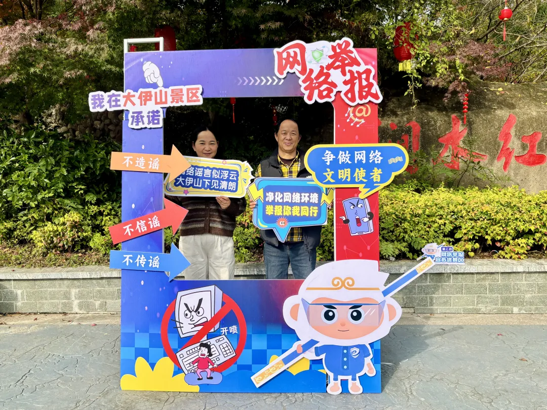 连云港灌云县委网信办围绕网络谣言治理、网络举报宣传等重点领域,深入大伊山景区开展网络举报主题宣传活动。